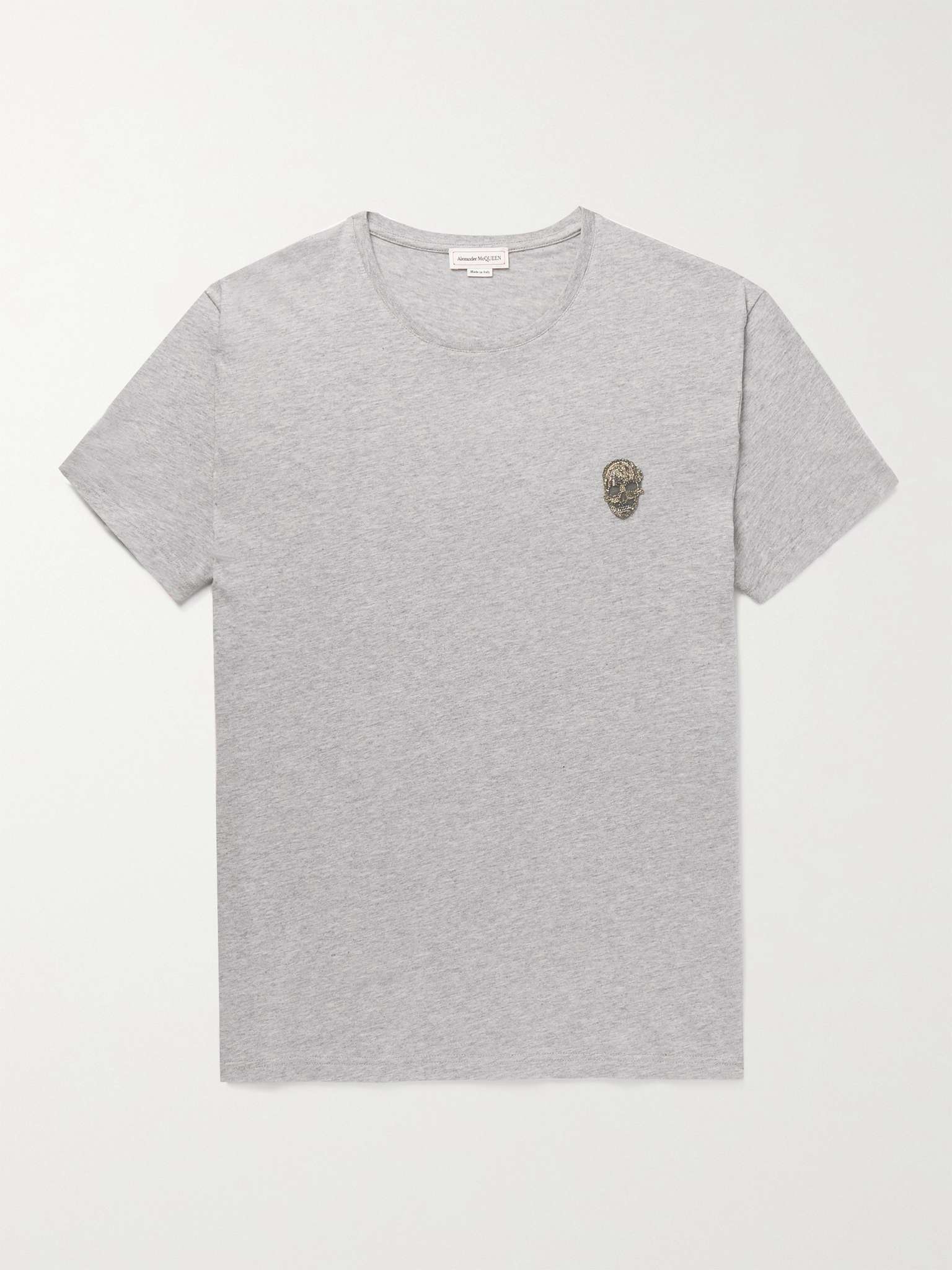 - Grey mélange cotton-jersey - Crew neck, beaded embellishment - 100% cotton - Dry clean