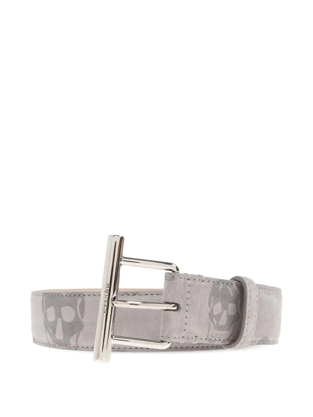 skull-print leather belt Highlights - Light grey - Skull motif - Pin buckle fastening - Keeper loop Made in Italy Composition Outer: Calf Leather 100% SIZE & FIT Measurement WIDTH 1.37 in(3.5 cm)