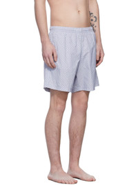 Nylon poplin swim shorts in blue featuring signature skull and dot pattern printed in pink and black throughout. · Mid-rise · Two-pocket styling · Drawstring at elasticized waistband · Partial mesh lining Supplier color: Sky blue/Pink Body: 100% polyamide. Lining: 100% polyester.