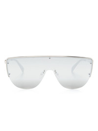 skull-stud shield-frame sunglasses Highlights - Silver-tone - Metal/acetate - Shield frame - Grey tinted lenses - Wide bridge - Nose pads - Logo-engraved arm - Small skull stud detail at the arms - Tortoiseshell-effect curved tips - These glasses come with a protective case. Imported Composition Acetate 100%, Metal 100% SIZE & FIT Measurement Arm Length 5.7 in(14.5 cm) Bridge Width 0.03 in(0.1 cm) Lens Diameter 3.89 in(9.9 cm) Total Width 5.51 in(14 cm)