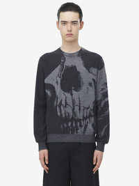 Crew neck sweater. Grey melange and charcoal vanise knit with Skull on the front. Finished with ribbed neck, cuffs and hem. Product details - Crew neck - Ribbed trims - Product code: 818835Q1BC01332 - Made in Italy - Material: Wool