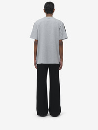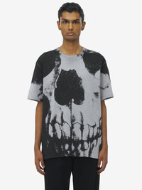 Crew neck T-shirt. Grey cotton jersey with an engineered Skull print. Finished with the McQueen logo on the back. Product details - Crew neck - Short sleeves - Product code: 815067QTAC50582 - Made in Italy - Material: Cotton