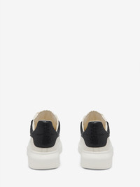 The Oversized Sneaker - Statement silhouette in off white and black grainy leather, with heel counter debossed with the McQueen logo. Finished with a chunky rubber sole. Product details - Round toe - McQueen logo - Contrasting heel counter - Oversized rubber sole - Additional pair of shoelaces included - Product code: 807881WHAEG9079 - Made in ITALY - Material: Shearling