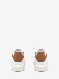 The Oversized Sneaker – statement silhouette in white calf leather, with a tan suede heel counter featuring the McQueen signature. Finished with a chunky rubber sole. Product details - Round toe - McQueen signature - Contrasting heel counter - Oversized rubber sole - Additional pair of shoelaces included - Product code: 553680WIAJW9900 - Made in ITALY - Material: Calf Leather