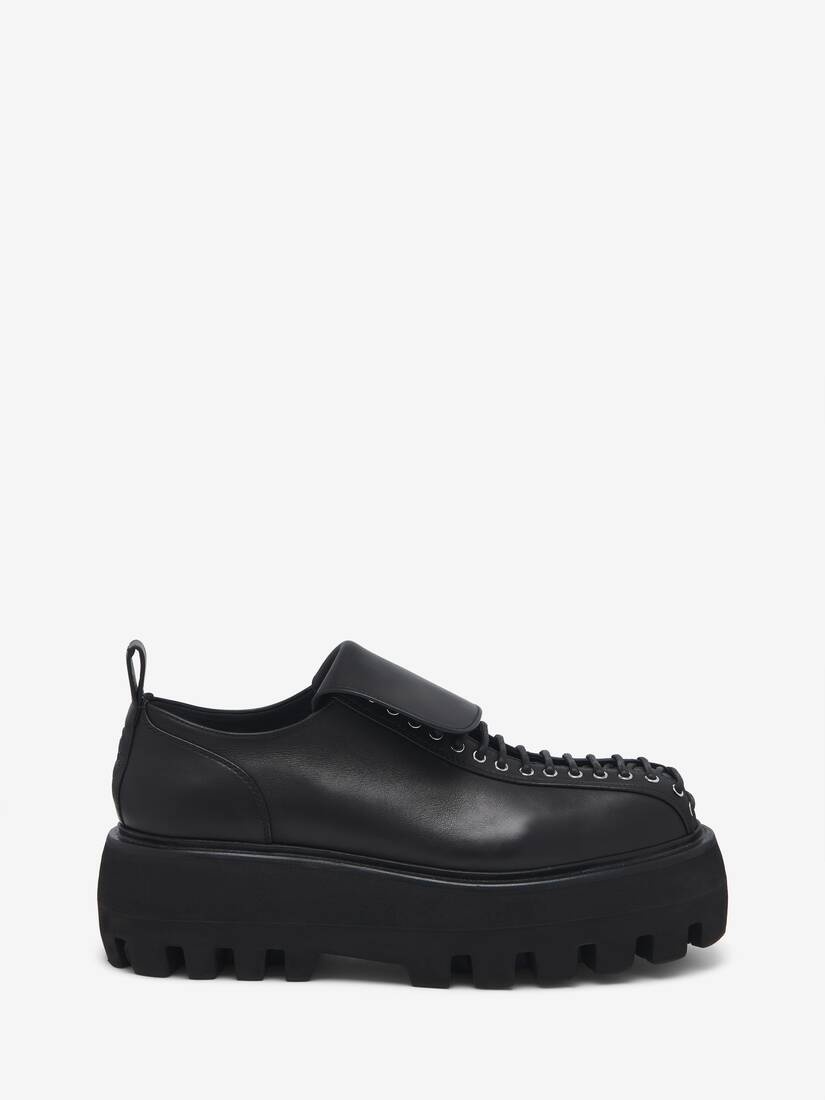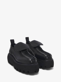 The Sofa Lace-Up – black calf leather with a round toe silhouette, detailed with a folded tongue and a lightweight chunky lug sole. Finished with fixed waxed laces. Product details - Lace-up closure - Round toe - Pull tab - Chunky lug sole - Sole height: 70mm / 2.7 inches - Product code: 817714WHACU1000 - Made in Italy - Material: Calf Leather