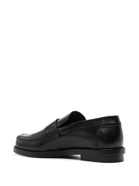 lizard-skin effect loafers Highlights - Black - Calf leather - Embossed lizard-skin effect - Round toe - Strap detailing - Branded insole - Leather lining - Low stacked heel - Leather sole - Slip-on style - We've partnered with good on you â an independent agency that rates how brands perform in relation to their impact on the planet, people and animals, with a multi-criteria rating simplified to a five points scale. in order to be awarded our conscious label, larger brands need to score a minimum of four out of five ('good'), while smaller brands must score at least three out of five ('it's a start'). - This item comes from a brand rated three out of five ('it's a start') by good on you at the time it was added on farfetch. please note, this is a brand-level rating and does not guarantee that this product is made with conscious materials. - Learn more about what makes a product conscious on our conscious criteria page Made in Italy Composition Lining: Calf Leather 100% Sole: Calf Leather 100% Outer: Calf Leather 100% SIZE & FIT Measurement HEEL 1.18 in(3 cm) Sole height 0.47 in(1.2 cm)