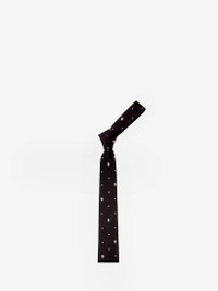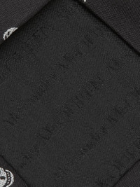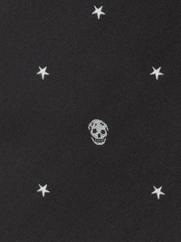 Black silk tie featuring ivory star and skull motifs. Product Details: 5 cm width Material:100% Silk Product Code:6231074002E1078