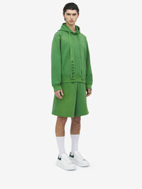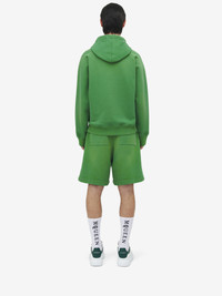 Crew neck hooded sweatshirt. Stonewashed dark viridian loopback jersey. Exploded drawstring with a Sailor Tattoo Rose print and front kangaroo pocket. Finished with a tonal McQueen logo embroidery on the chest. Complete the look with the matching shorts. Product details - Crew neck - Long sleeves - Ribbed trims - Product code: 827062QXACE3059 - Made in Italy - Material: Cotton