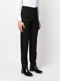 stripe-detail tailored trousers jet black cotton-wool blend side stripe detailing high-waisted belt loops concealed front zip fastening two side slit pockets two rear welt pockets straight leg Made in Italy Composition Lining: Cotton 100%, Cupro 100% Outer: Wool 100% Washing instructions Dry Clean Only