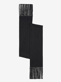 Scarf in a black silk Stripe jacquard. The scarf is finished with the McQueen logo and tonal fringe detailing. Product details - Dimensions: 18 x 200cm / 7 x 78.7 inches - Product code: 8150894009Q1000 - Made in Italy - Material: Silk
