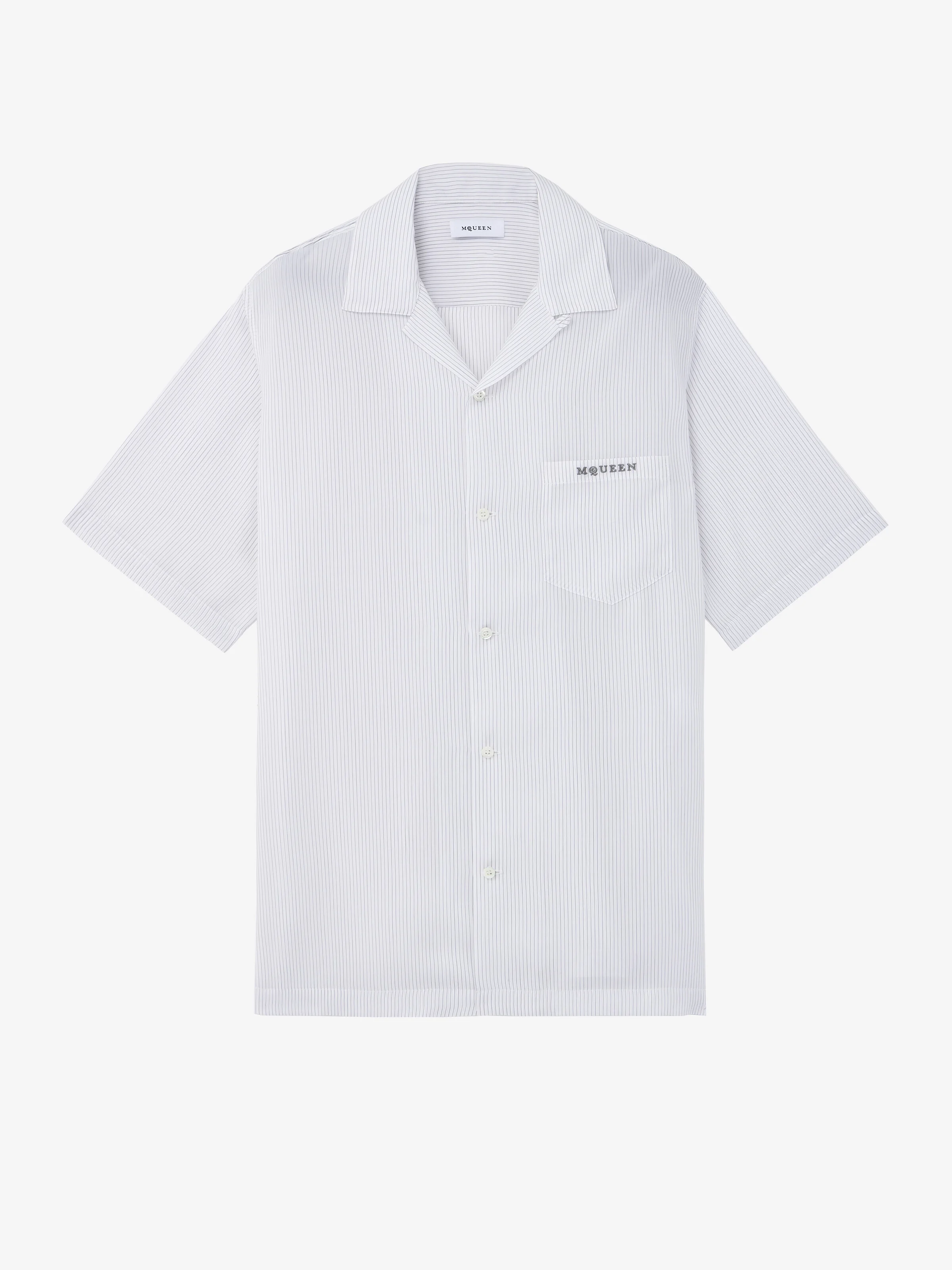 Hawaiian shirt in white and charcoal fluid fine stripe shirting. Camp collar and chest pocket. Finished with a curved hem and front button fastening. Complete the look with the matching shorts. Product details - Camp collar - Chest pocket - Front button fastening - Product code: 826631QRAB79228 - Made in Romania - Material: 100% Lyocell