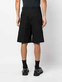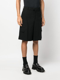 tailored cotton shorts Rendered in black, these knee-length shorts from Alexander McQueen are cut to a sleek silhouette evocative of the brand's rich tailoring roots. They're crafted in Italy from cotton and fitted with multiple pockets. Highlights - Black - Cotton - Mid-rise - Off-centre front fastening - Belt loops - Two side flap pockets - Two side welt pockets - Rear flap pocket - Rear welt pocket - Knee-length Made in Italy Composition Outer: Cotton 100% Lining: Cotton 100% SIZE & FIT Model measurements Height 6 ft 1 in(1.85 m) Bust/Chest 35.82 in(91 cm) Hips 37.79 in(96 cm) Waist 29.13 in(74 cm) FittingInformation Designed with a wide leg, offering a loose and roomy fit Made from a midweight non-stretch fabric This piece fits true to size – take your usual size Washing instructions Dry Clean Only