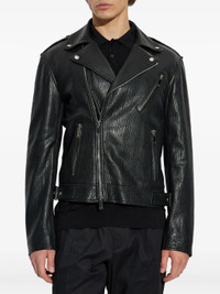 black asymmetrical zip fastening multiple zip pockets epaulettes on shoulders notched collar silver-tone hardware - Color: BLACK - Made in: Italy - Designer Style ID: 839817 Q5LDS 1000 Composition and care Outer Composition Lamb Skin: 100.0%, Lining Composition Viscose: 100.0%