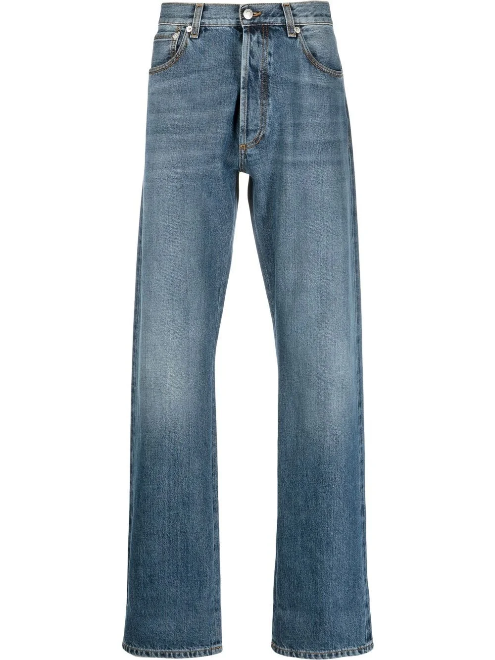 turn-up cuff straight-leg jeans Highlights - Blue - Cotton - Stonewashed - Logo patch to the rear - Contrast stitching - Belt loops - Concealed fly and button fastening - Classic five pockets - Turn-up cuffs - Straight leg Made in Italy Composition Lining: Polyester 65%, Cotton 35% Outer: Cotton 100% SIZE & FIT Model measurements Height 6 ft 2 in(1.87 m) Bust/Chest 38.18 in(97 cm) Hips 36.61 in(93 cm) Waist 29.13 in(74 cm) FittingInformation This piece fits true to size. We recommend you get your regular size Regular fit Made with a mid-weight non-stretch fabric Washing instructions Machine Wash