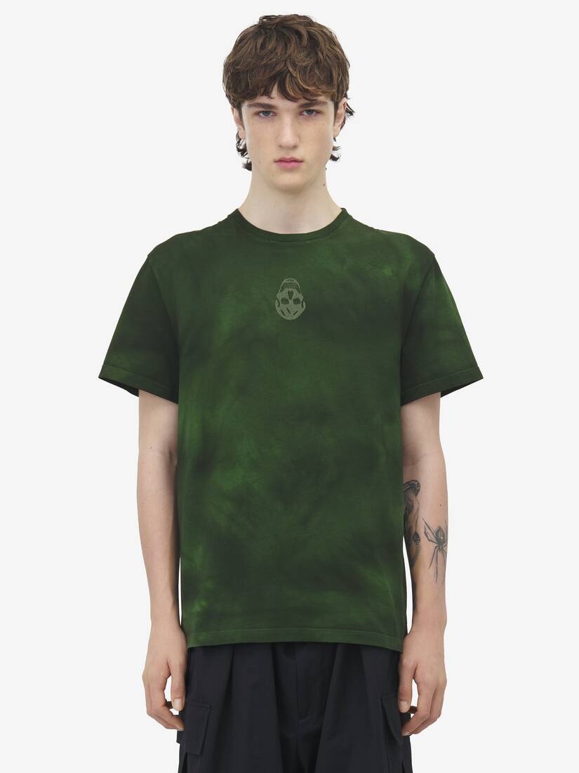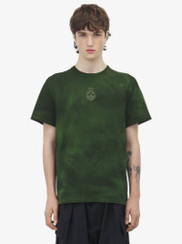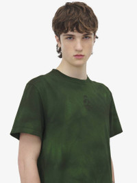 Crew neck T-shirt. Green washed dye cotton jersey with tonal inverted skull embroidered front detail. Product details - Crew neck - Short sleeves - Regular fit - Made with organic cotton yarn - Product code: 808915QXABL3012 - Made in Italy