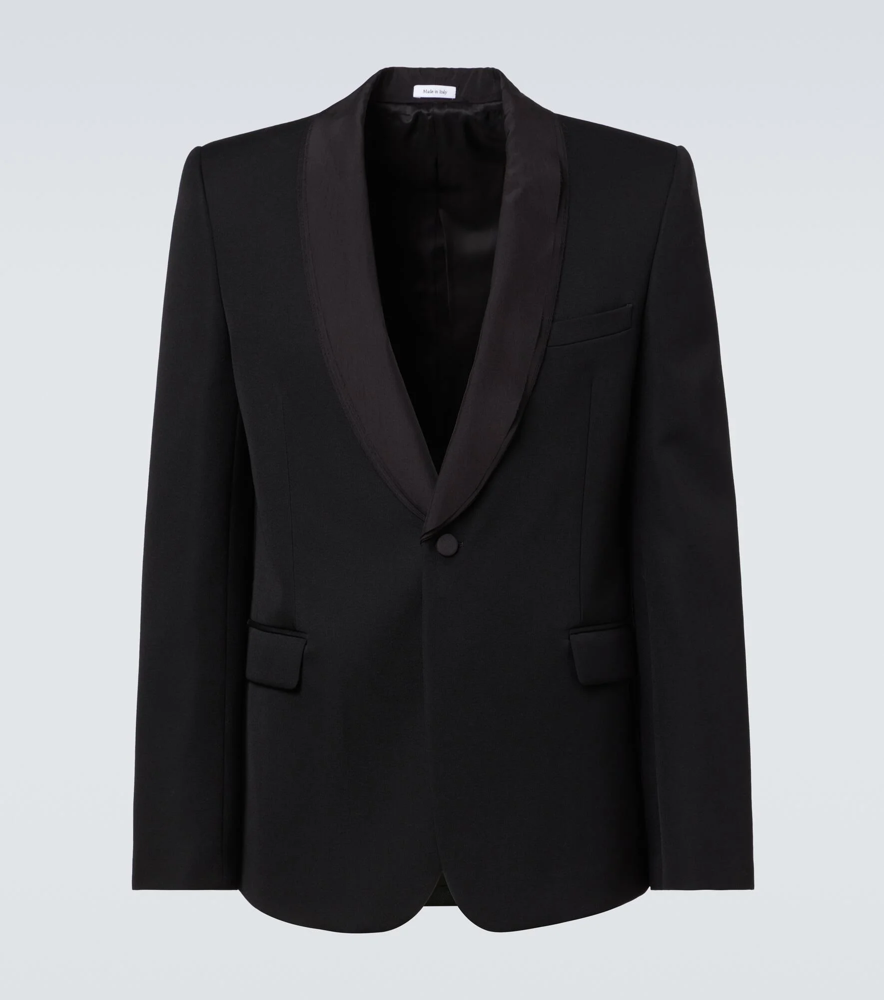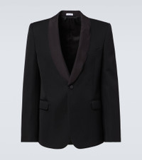 A legacy of the founder's Savile Row training, tailoring lies at the heart of McQueen. Crafted from virgin wool, this suit jacket features a single-button closure and an elegant shawl lapel. Product Details - Material: 100% virgin wool - Care instructions: dry clean - Made in Italy - Designer color name: Black - Item color: black - Lining: 100% cupro - Sleeve lining: 100% viscose - Pocket lining: 100% cotton - Details: 100% silk - Contrast lapel - Pockets: breast pocket, flap pockets, internal pockets - Cuff: four buttons - Closure: single-breasted (one button) - Vent: single - Item number: P01110023 Size & Fit - Fits small to size - we recommend trying one size larger - Shoulder pad inserts - Straight fit - Non-stretchy fabric - Falls below the hip - Height of model is 188cm-74" and wears a size IT 50
