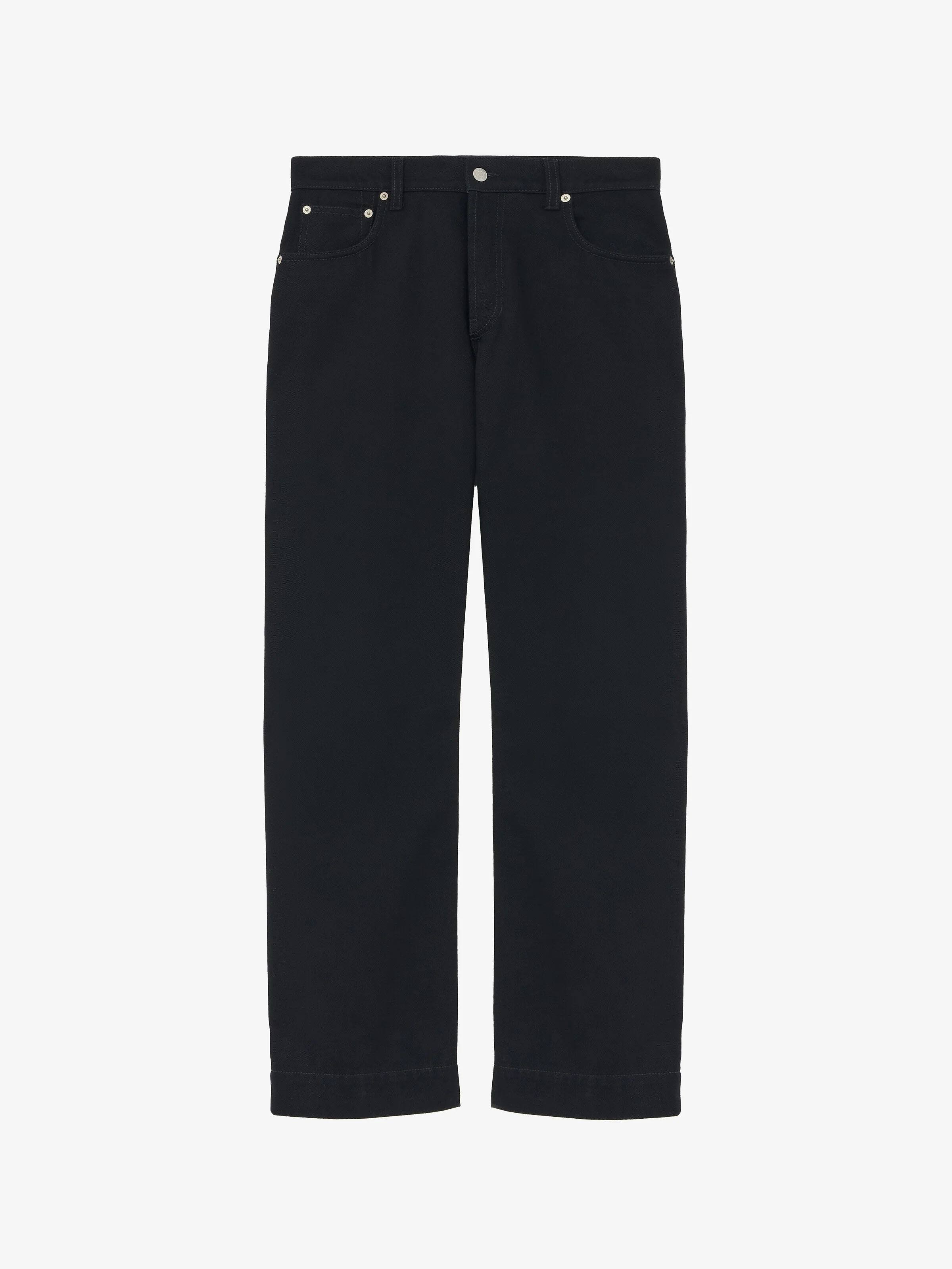 Wide-leg jeans in black denim. Five pocket design. Finished with a front button and zip fastening. Product details - Belt loops - Front button and zip fastening - Product code: 839142QYAAC1000 - Made in Italy - Material: Cotton