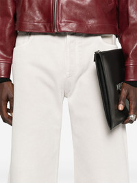 straight-leg jeans Highlights - Light grey - Concealed fly and button fastening - Belt loops - Classic five pockets - Applique logo Made in Italy Composition Lining: Polyester 65%, Cotton 35% Outer: Cotton 100% SIZE & FIT Model measurements Height 6 ft 0 in(1.84 m) Bust/Chest 35.82 in(91 cm) Hips 37 in(94 cm) Waist 28.34 in(72 cm) FittingInformation Designed with a flared hem, these jeans offer a slim fit over the leg that widens towards the hem Sturdy and hard-wearing, this denim piece offers no stretch Washing instructions Machine Wash