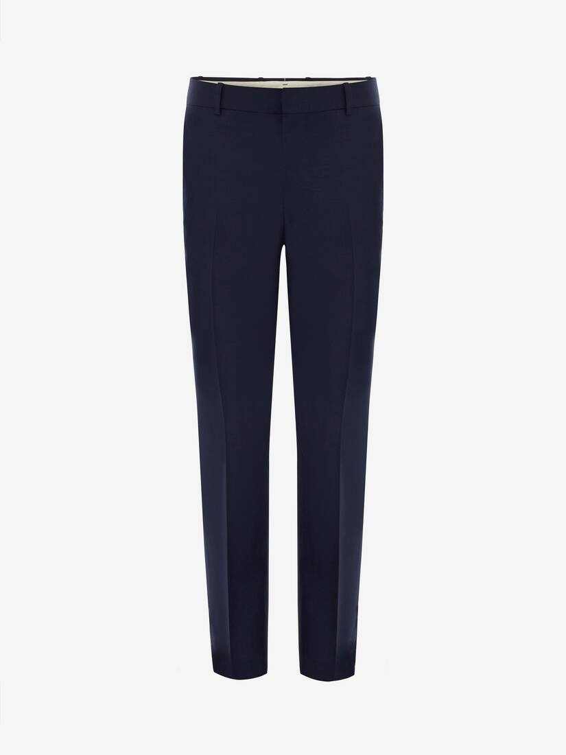 Tailored pants in navy wool mohair. The pants feature two side pockets and two pockets on the back. Finished with a concealed zipper and hook closure. Material:75% Wool, 25% Mohair Product Code:598972QOU124100