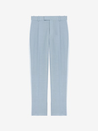 Tuxedo trousers. Ice blue wool mohair with tonal satin side stripes. Belt loops, side pockets and back welt pockets. Finished with a concealed zip and hook fastening. Complete the look with the matching jacket. Product details - Belt loops - Side pockets - Concealed zip and hook fastening - Product code: 851315QUAAE4602 - Made in ITALY - Material: 75% Wool, 25% Mohair