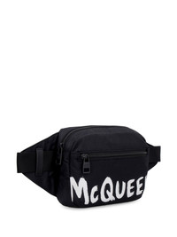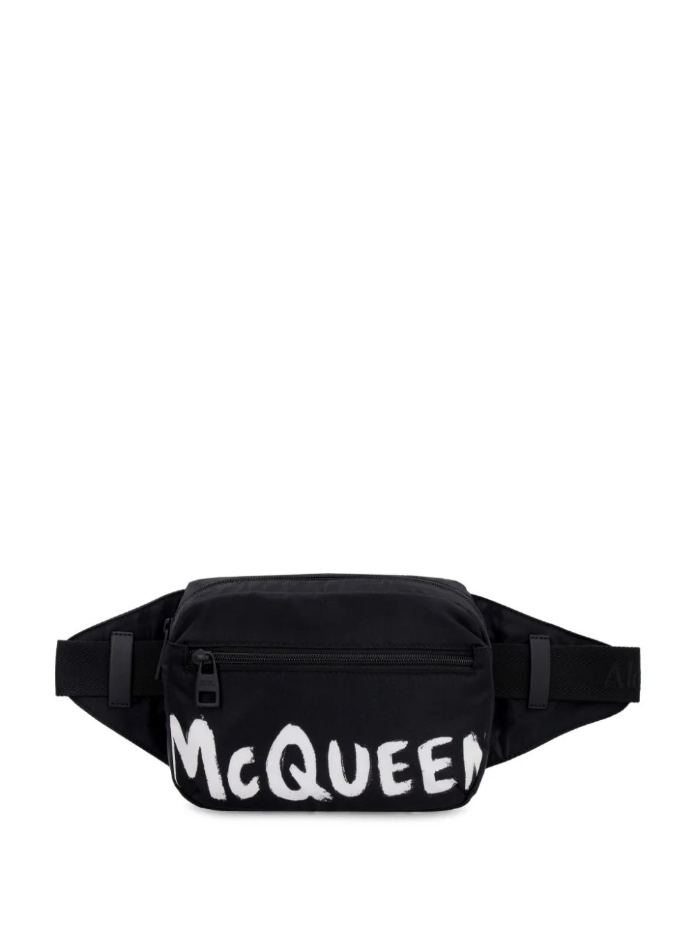 logo belt bag For years you've been overstuffing your pockets. Now you can carry your essentials in this logo belt bag from Alexander McQueen. It's as stylish as it is practical. Highlights - Black/white - Logo print to the front - Adjustable waist strap - Top zip fastening - Main compartment - Front zip-fastening compartment Made in Italy Composition Outer: Nylon 100% SIZE & FIT Measurement DEPTH 3.93 in(10 cm) HEIGHT 5.9 in(15 cm) STRAP 21.65 in(55 cm) WIDTH 9.05 in(23 cm)