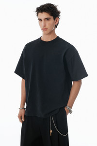 Defined by an allover vintage fade effect and a chunky ribbed collar, this black boxy T-shirt features a classic logo embossed at the hem. - crewneck - short sleeves - body composition: 100% cotton - made in portugal - model is 6'1" and wears a size m - 6CC3251101001 composition Body: 100%COTTON