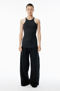 Oversized sweatpant in black creased terry with engineered folds and a mid-rise, wide-leg fit. Designed with an elastic waistband, articulated seams, and tonal logo embroidery at the thigh. - elastic waistband with internal drawcord - side seam pockets - back seam detail - mid-rise fit - body composition: 74% polyester / 26% cotton - made in Portugal - female model is 5'11" and wears a size s - male model is 6'2" and wears a size m - UCC4254432001 composition Body: 74%POLYESTER/26%COTTON