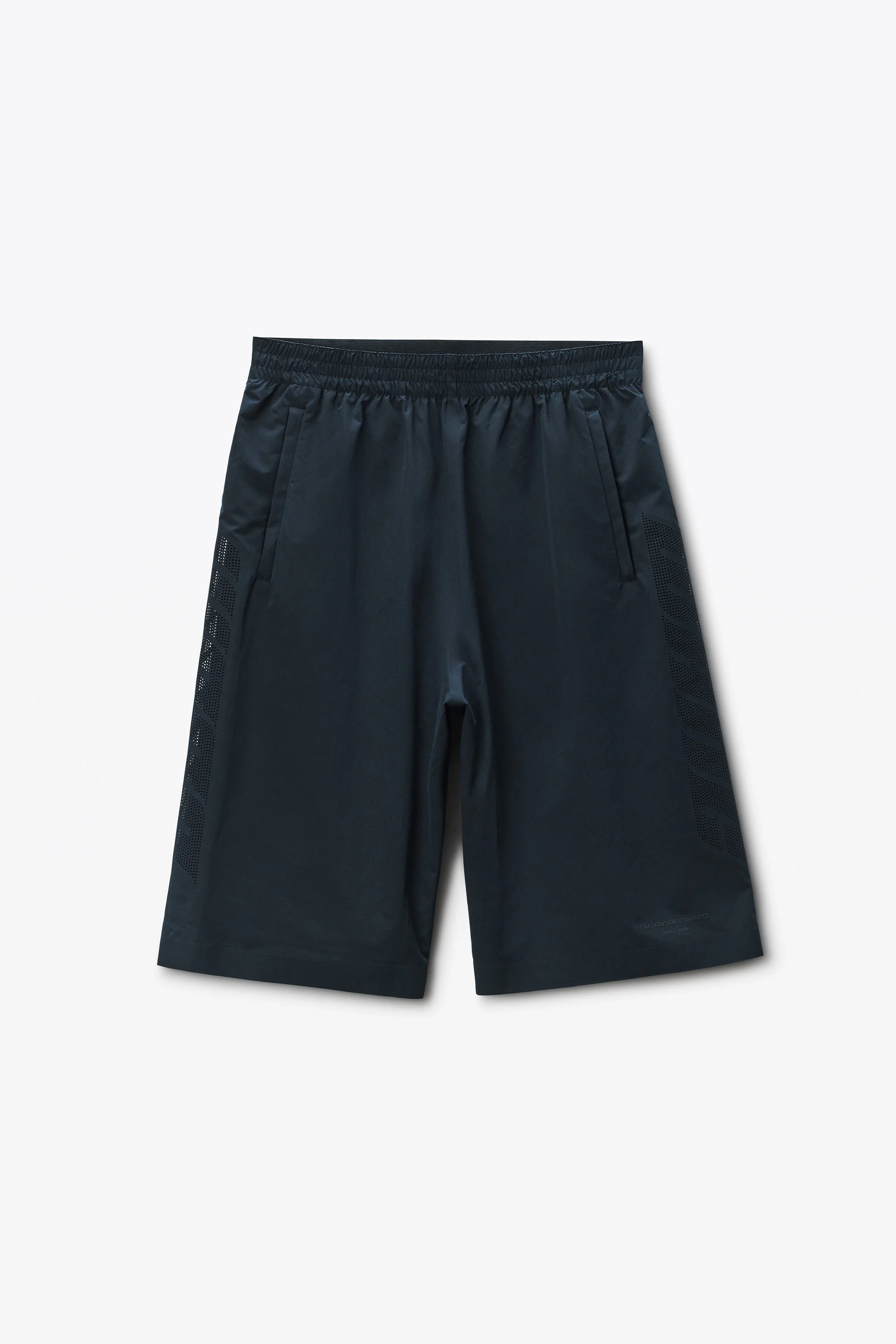 a perforated graphic and logo on the inner waistband define these black basketball shorts, constructed with zippered welt pockets, bonded seams, and an elasticated waistband. - elastic waistband - zippered welt pockets - body composition: 100% polyester - made in china - model is 6'1" and wears a size m - 6WC3254102001 composition Body: 100%POLYESTER