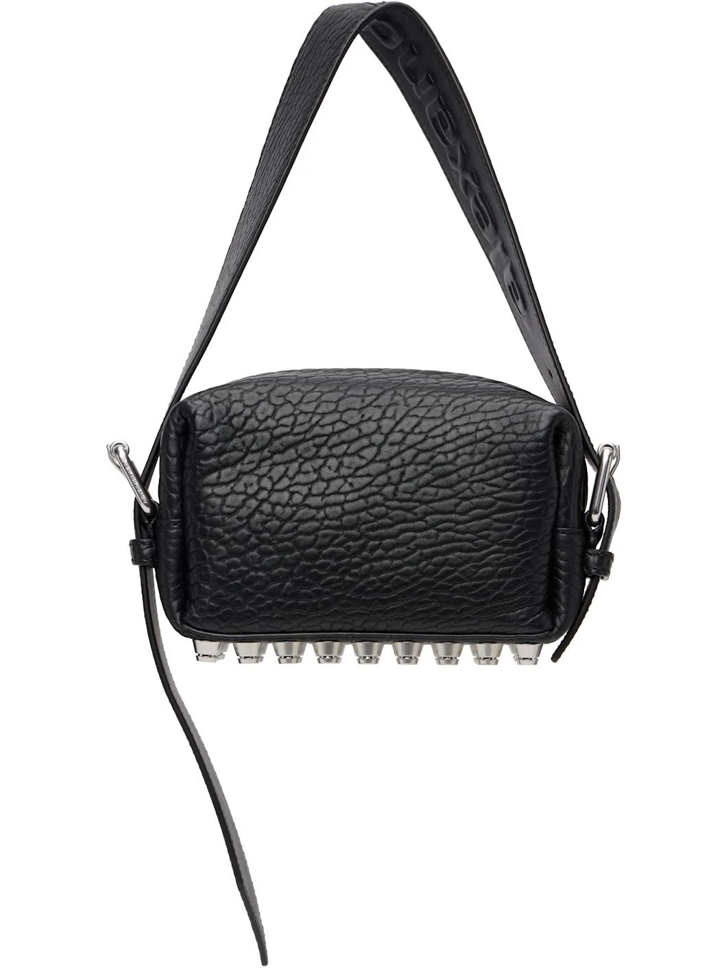 Grained lambskin shoulder bag. · Adjustable and detachable shoulder strap · Includes alternate crossbody strap · Flat-head studs at base · Zip closure · Phone slot and card slot at interior · Poplin lining · H6" x W8" x D3" Supplier color: Black Lambskin. Made in Viet Nam 252187M170001