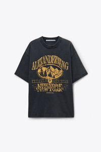 Unisex boxy T-shirt made from washed black dry jersey with a soft sunfade wash. Designed with a relaxed, oversized fit, it features a ribbed crewneck collar and seasonal outdoor recreation graphic at the chest. - unisex fit - crewneck - short sleeves - body composition: 100% cotton - made in Portugal - female model is 5'11" and wears a size S - male model is 6'1" and wears a size m - UCC4251851011 composition Body: 100%COTTON