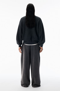 Long sleeve henley pullover in classic charcoal wool with an oversized fit and hip-length hem. Features a faux horn button placket at the front and a tonal alexanderwang knit logo patch at the lower left hem. - unisex fit - henley-style front placket - long sleeves - body composition: 94% wool / 5% polyamide / 1% elastane - oversized, hits at hip - body composition: 94% wool / 5% polyamide / 1% elastane - made in China - female model is 5'11" and wears a size S - male model is 6'1" and wears a size m - UKC4251062010 composition Body: 94%WOOL (OVIS ARIES ARIES)/5%POLYAMIDE/1%ELASTANE Rib: 89%WOOL (OVIS ARIES ARIES)/10%POLYAMIDE/1%ELASTANE