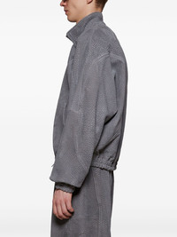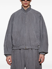 leather track jacket Highlights - Grey - Front zip fastening - Two side slit pockets - Long sleeves Imported Composition Lining: Polyester 100% Outer: Lambskin 100%