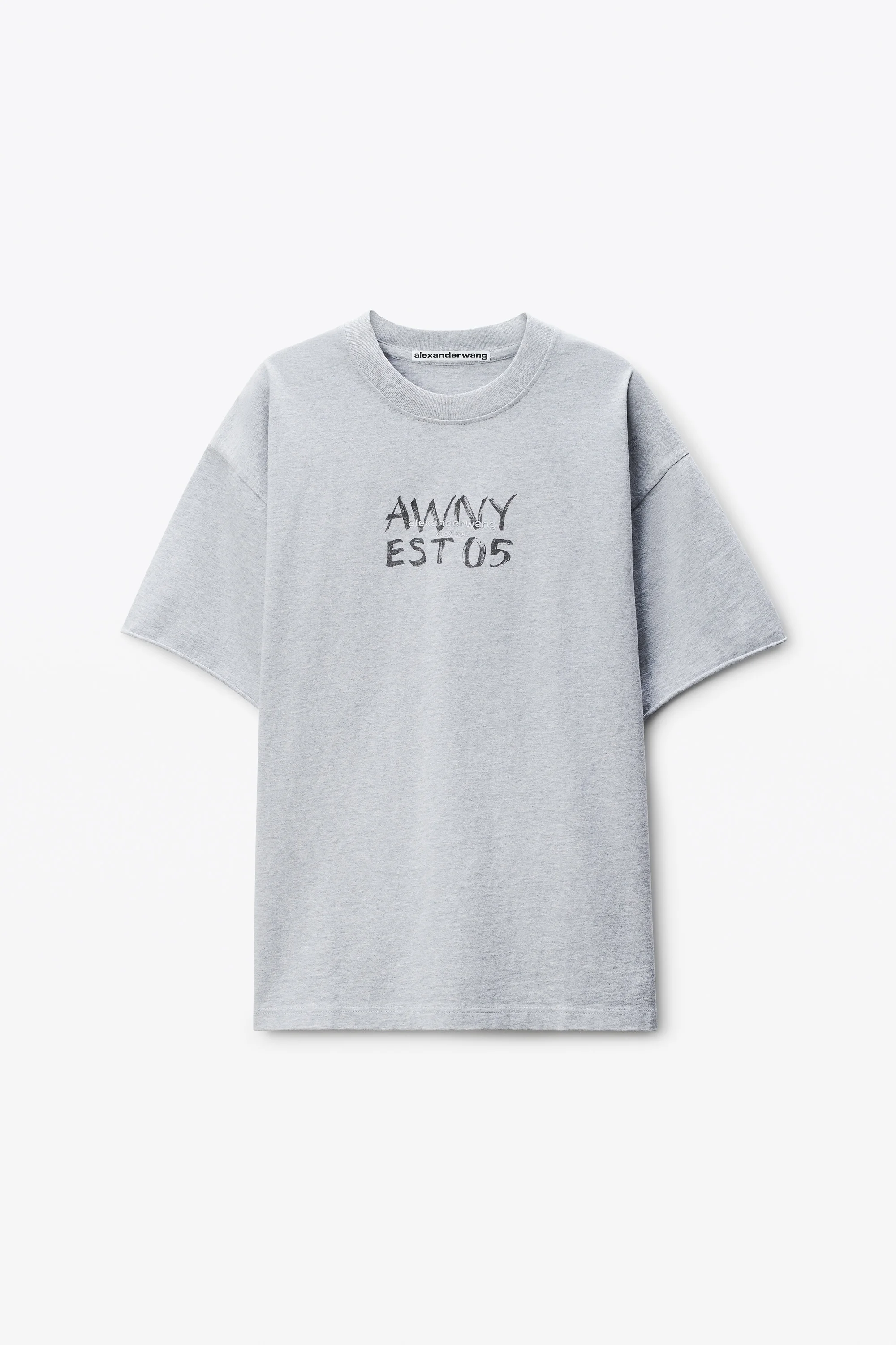 A marker-effect graffiti logo graphic defines this heather grey cotton tee, crafted in a supersoft wash for a worn-in feel. - crewneck - short sleeves - body composition: 100% cotton - made in portugal - model is 6'1" and wears a size m - UCC3251841050 composition Body: 100%COTTON