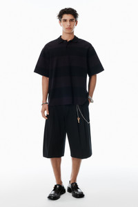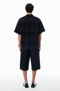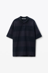 This striped cotton pique polo features an exposed front placket and distressing at the collar and hem. - polo collar - short sleeves - body composition: 98% cotton/2% elastane - made in portugal - model is 6'1" and wears a size m - 6CC3251094963B composition Body: 98%COTTON/2%ELASTANE