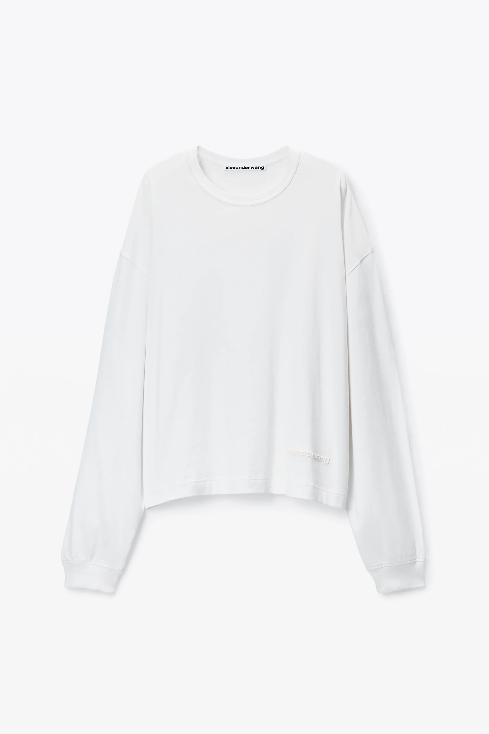 This long-sleeve jersey tee in white features a vintage wash for a weathered look with logo detailing at the side. - crewneck - long sleeves - relaxed fit - body composition: 100% cotton - trim: 100% cotton - model is 6'1" and wears a size m - made in portugal - 6CC1251066120 composition Body/Exterieur: 100%COTTON Rib Trim: 100%COTTON