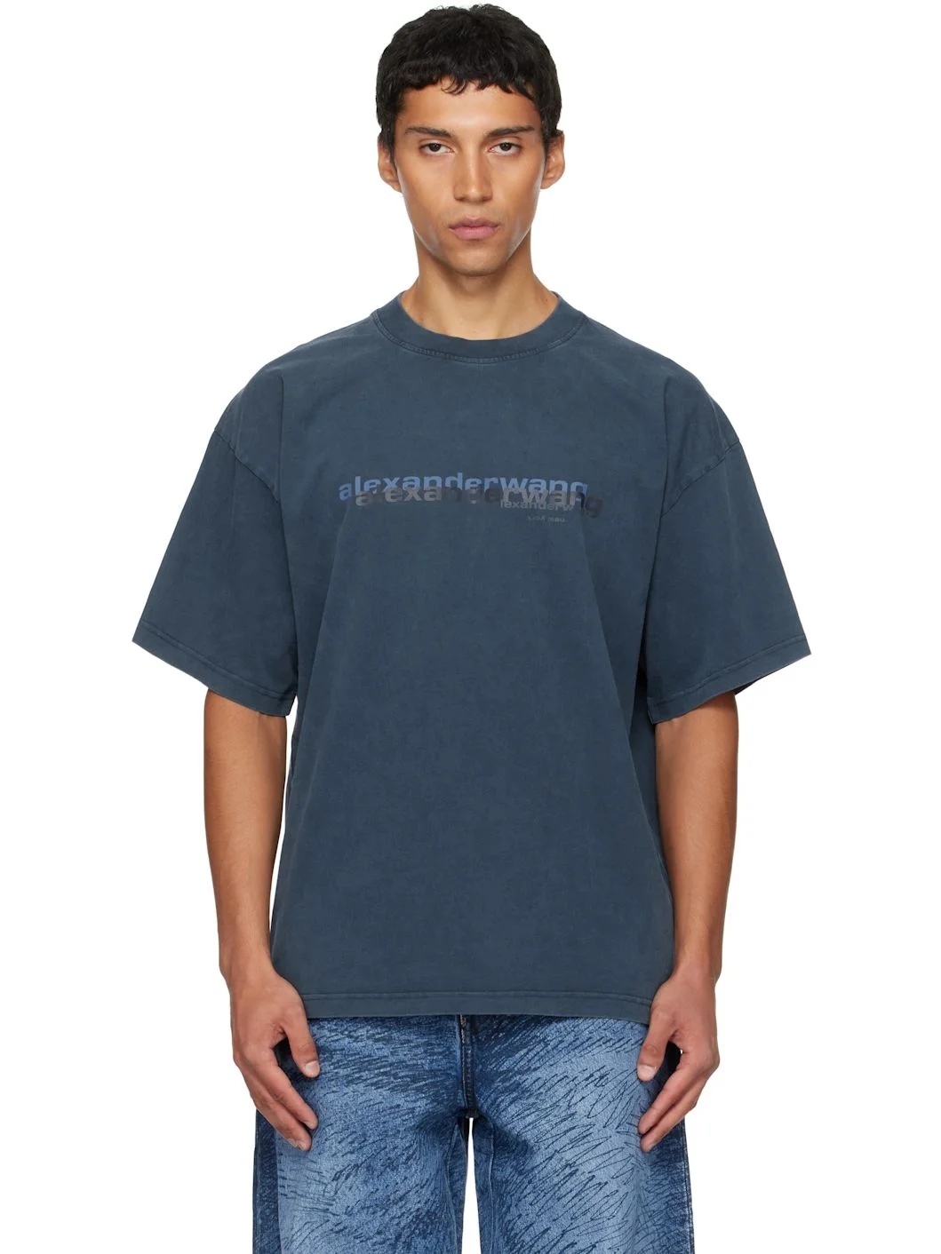 Cotton jersey T-shirt. · Rib-knit crewneck · Logos printed at front · Dropped shoulders Supplier color: Washed navy 100% cotton. Made in China 252187M213012