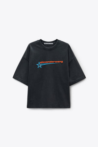 Unisex oversized t-shirt made from washed black compact dry cotton jersey. Features a boxy silhouette, chunky ribbed crewneck, and puff/hotfix 20th anniversary star graphic across the chest. - ribbed crewneck - short sleeves - boxy silhouette - body composition: 100% cotton - made in portugal - female model is 5'11" and wears a size s - male model is 6'2" and wears a size m - UCC4251863011 composition Body: 100%COTTON Rib: 98%COTTON/2%ELASTANE