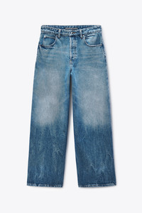 Vintage marbled blue denim in a low-rise wide leg silhouette. Finished with a button fly and embossed logo detail at the back pocket. - Vintage Marbled Blue - Low rise - Logo embossed - Body Composition: 100% cotton. - model is 6'1" and wears a size 32 - Made in Turkey - 6DC1264972400C composition Body: 100% COTTON