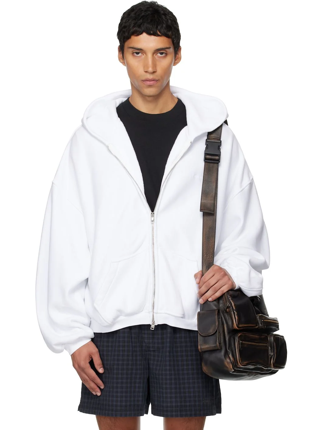 Cotton French terry hoodie. · Two-way zip closure · Logo embroidered at chest · Patch pockets at front · Rib-knit hem and cuffs · Dropped shoulders · Logos printed at back Supplier color: Vintage white Body: 100% cotton. Trim: 99% cotton, 1% elastane. Made in China 252187M202005