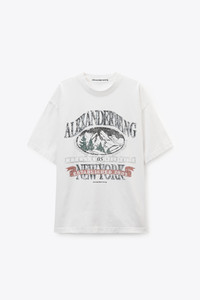 Unisex boxy T-shirt made from vintage white dry jersey with a soft sunfade wash. Designed with a relaxed, oversized fit, it features a ribbed crewneck collar and seasonal outdoor recreation graphic at the chest. - unisex fit - crewneck - short sleeves - body composition: 100% cotton - made in Portugal - female model is 5'11" and wears a size S - male model is 6'1" and wears a size m - UCC4251851120 composition Body: 100%COTTON