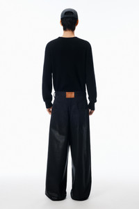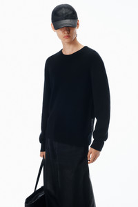 Black ribbed wool-cotton crewneck in a long sleeve silhouette. Designed with doubled self neck trim, subtle top-stitch detailing, and a knit flag tag above the hem. - Black - Crewneck - Ribbed knit - Double-needle stitched detailing - Body composition: 52% wool/27% polyamide/20% cotton/1% elastane - Trim: 54% wool/24% polyamide/21% cotton/1% elastane - Model is 6'1" and Wears a Size M - Made in China - 6KC1261118001 composition Body: 52%WOOL (OVIS ARIES ARIES)/27%POLYAMIDE/20%COTTON/1%ELASTANE Rib Trim: 54%WOOL (OVIS ARIES ARIES)/24%POLYAMIDE/21%COTTON/1%ELASTANE