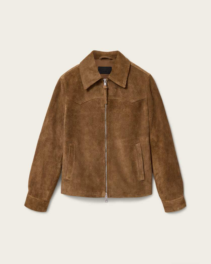 Dellcot Suede Jacket The magnificent suede – riding into your outwear rotation is our Dellcott Suede Jacket. Saddle your outfit with this elevated western-inspired piece, guaranteed to become a reliable favorite. - Zip closure - Classic collar - Long sleeves - Western detailing - Cropped length - The model is 6'1" and wearing size Medium FABRIC & CARE: - Shell: 100% buffalo suede - Lining: 100% recycled polyester - Professional leather clean only Made in: India Product ID: USM027LD-5870