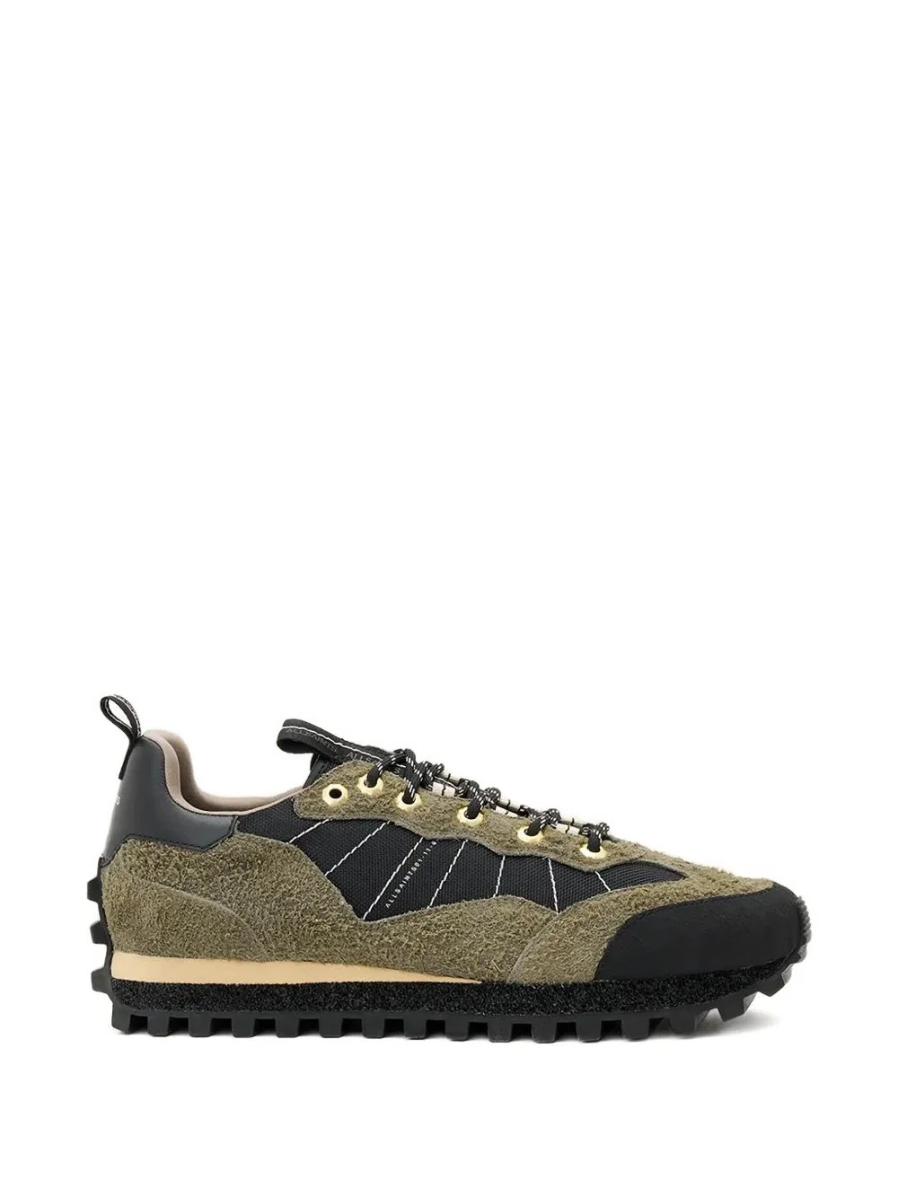 Nevis contrast-panelled sneakers Highlights - Khaki green - Panelled design - Gold-tone eyelets - Lug sole - Lace-up fastening - Pull-tab at the heel Imported Composition Outer: Calf Suede 85%, Polyester 10%, Sheepskin 5% Lining: Polyester 100% Sole: Rubber 100%