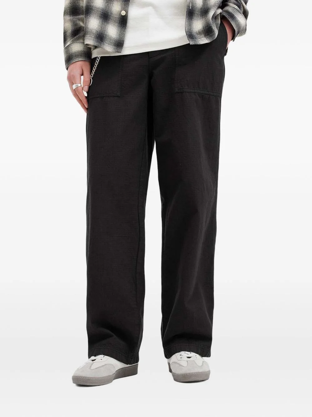 organic cotton trousers Highlights - Black - Button fly - Patch pockets Imported Composition Organic Cotton 100% Washing instructions Read Manufacturer Guidelines