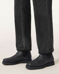 Skiff Chelsea Boots Chelsea boots are a closet essential and the Skiff is the AllSaints take. An iconic shoe option, wear with formal wear or jeans. - These boots fit true to size - Elastic gusset closure - Branded counter tab - Almond toe - Heel height: 32mm - Platform height: 20mm FABRIC & CARE: - Upper: 100% cow leather - Lining and sock: 100% goat leather - Sole: 100% EVA - Wipe clean only Made in: Portugal Product ID: USM025FD-5