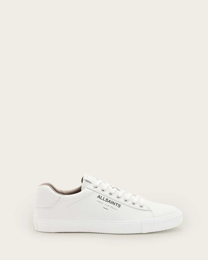 Underground Leather Low Top Sneakers Crafted from leather to a classic low-top shape. Our iconic signature features along the side. From London to Tokyo – these are the Underground Low Tops. The perfect casual pair you can wear all day long, they lend well to any aesthetic. - These sneakers fit true to size - Low tops - Round toe - Rubber tread - Lace up - AllSaints Underground logo and branded sole FABRIC & CARE: - Upper: 100% cow leather - Lining: 100% recycled polyester - Sole: 100% rubber - AllSaints leather products support responsible manufacturing via the Leather Working Group – find out more Made in: China Product ID: USM058FB-9214