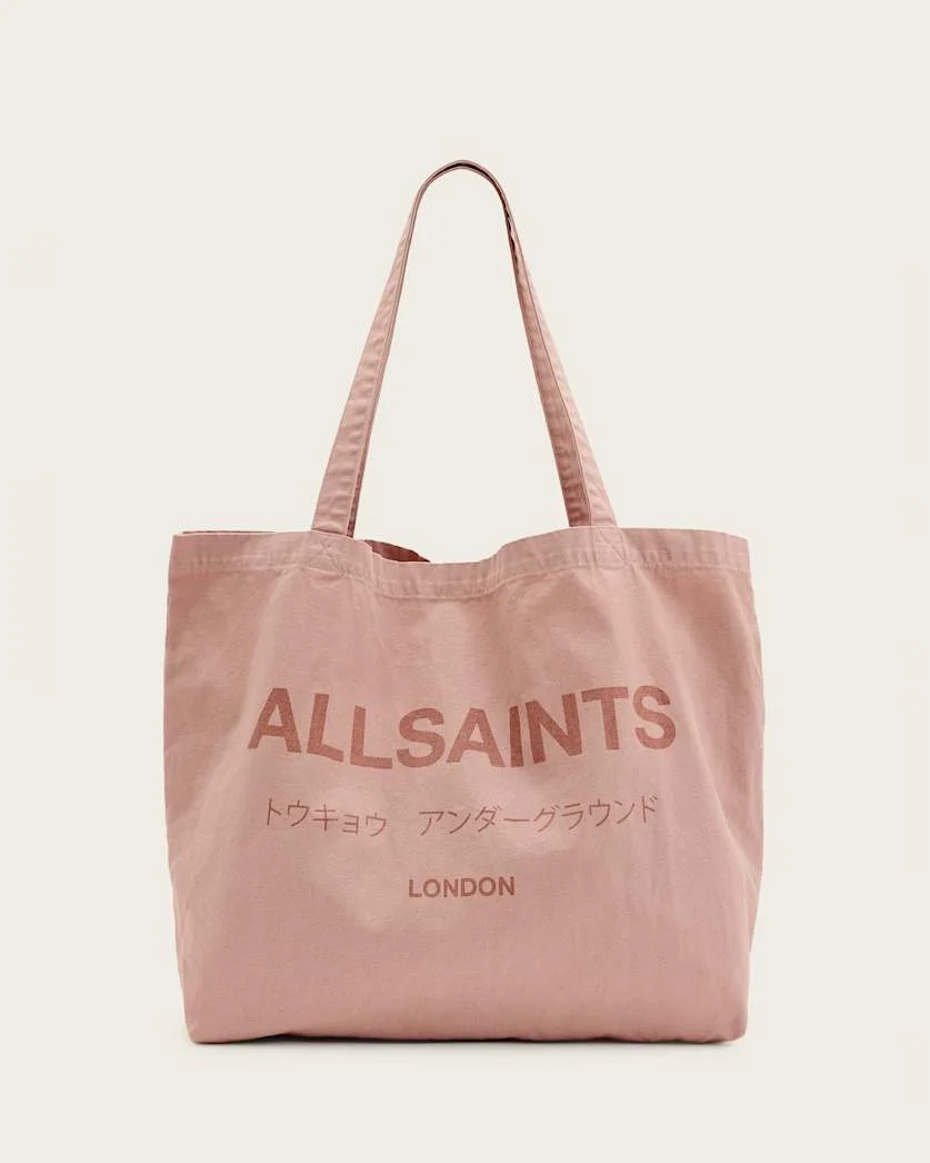 Underground Logo Printed Tote Bag Keep everything you need close by in the Underground Tote Bag. Crafted from cotton and shaped to a spacious silhouette, it can hold a lot. Our AllSaints graphic takes centre stage on the front. - Carry handles - AllSaints Underground graphic - Large spacious body FABRIC & CARE: - Handle drop: 30cm - Height: 35cm, Top width: 49cm, Base depth: 12cm - 100% cotton - Wipe clean only Made in: China Product ID: USM170XB-9073
