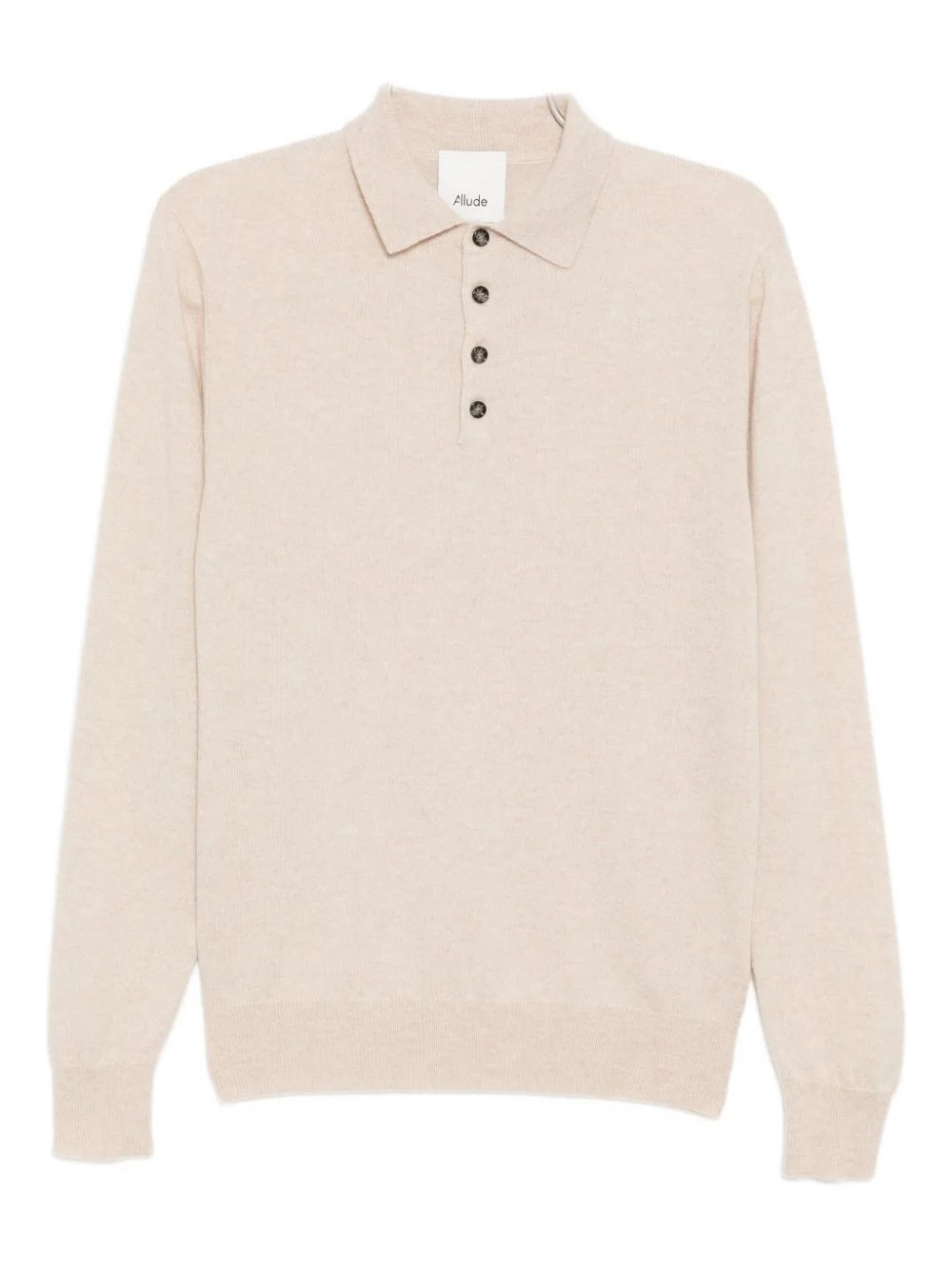 cashmere polo shirt Highlights - Ecru - Front button fastening - Long sleeves - Ribbed cuffs and hem Made in Italy Composition Cashmere 100% SIZE & FIT Model measurements Height 6 ft 1 in(1.85 m) Bust/Chest 40.15 in(102 cm) Hips 37.79 in(96 cm) Waist 29.52 in(75 cm) FittingInformation Designed for a regular fit, offering a comfortable loose fit throughout the body The ribbed hem offers a close, comfortable fit Made with a lightweight knit, this piece offers some stretch Washing instructions Hand Wash