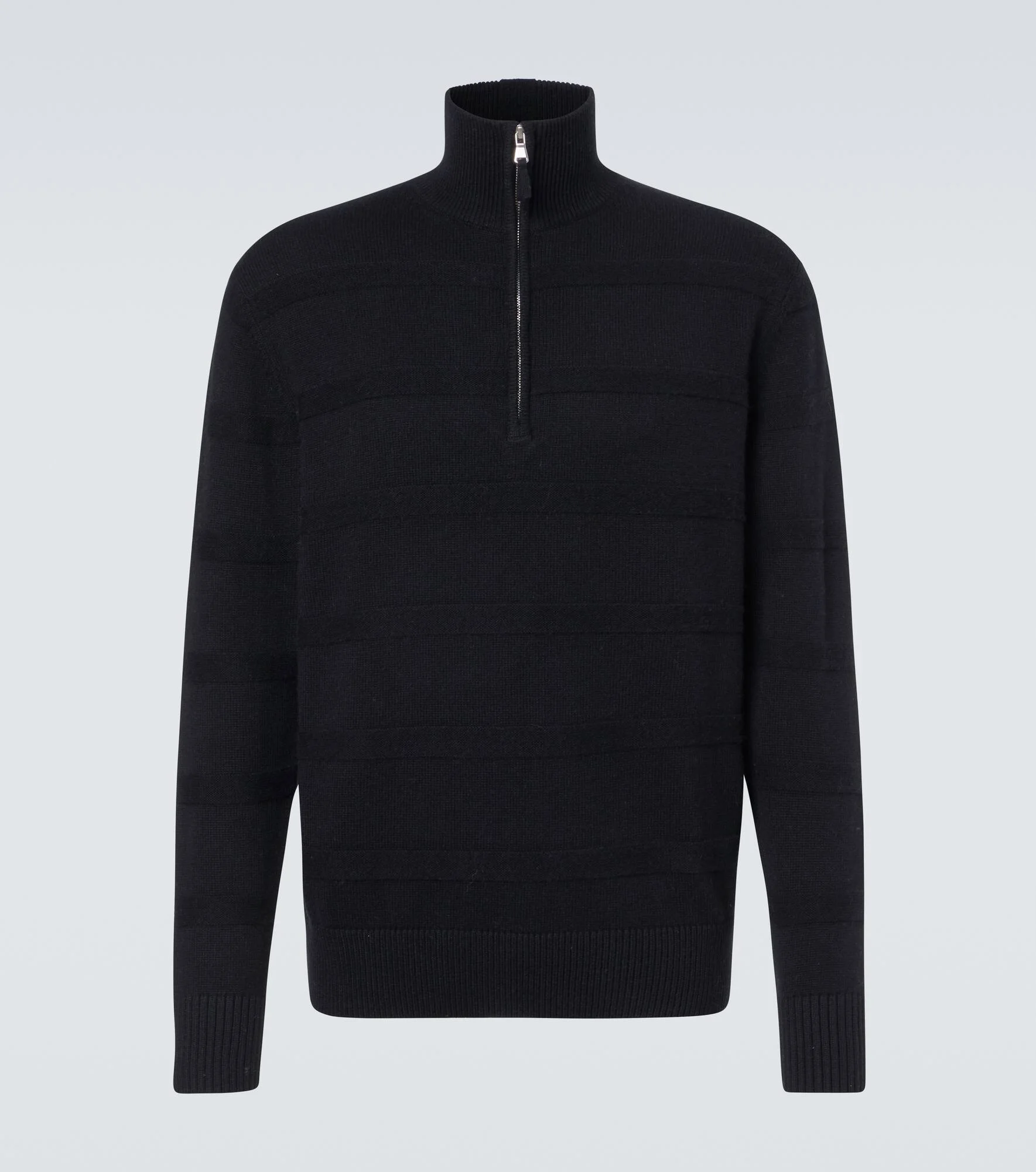 Allude creates refined cashmere pieces that unite classic style with modern design, echoing the meaning behind the brand’s name. This sweater is crafted from a soft cotton and cashmere blend and features a half-zip turtleneck, and ribbed-knit trims. Product Details - Material: 70% cotton, 30% cashmere - Care instructions: hand wash - Made in China - Color: black - Designer color name: 90/90 - Item color: black - Closure: partially zipped front - Cuff: ribbed - Hem: ribbed - Item number: P01135605 Size & Fit - True to size - Straight fit - Slightly stretchy fabric - Falls below the hip - Height of model is 192cm-75.5" and wears a size L