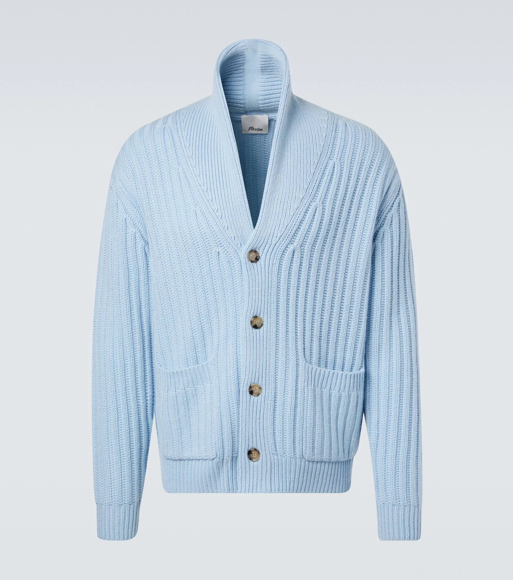 Allude creates refined cashmere pieces that unite classic style with modern design, echoing the meaning behind the brand’s name. Made from a soft blend of wool and cashmere, this button-up cardigan features a ribbed-knit construction and patch pockets. Product Details - Material: 70% wool, 30% cashmere - Care instructions: hand wash - Made in China - Color: blue - Designer color name: 11 - Item color: blue - Closure: buttoned front - Pockets: patch pockets - Item number: P01135472 Size & Fit - True to size - Straight fit - Slightly stretchy fabric - Falls to the hip - The model in the picture is 185cm-6'1" and wearing a size L